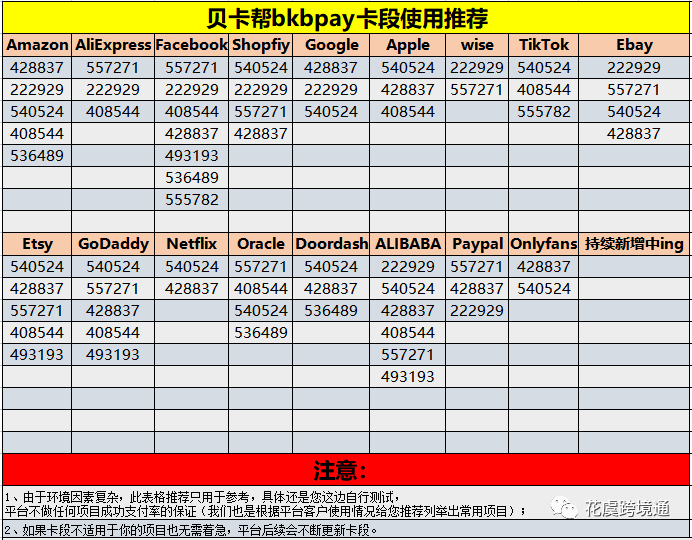 540524(美国万事达)、428837(美国VISA)、222929(香港卡段)、408544(美国VISA)、485953(美国企业级VISA)、493193(哥斯达黎加企业级VISA)、557271(美国万事达)、536489(美国万事达)、555782(美国万事达)。